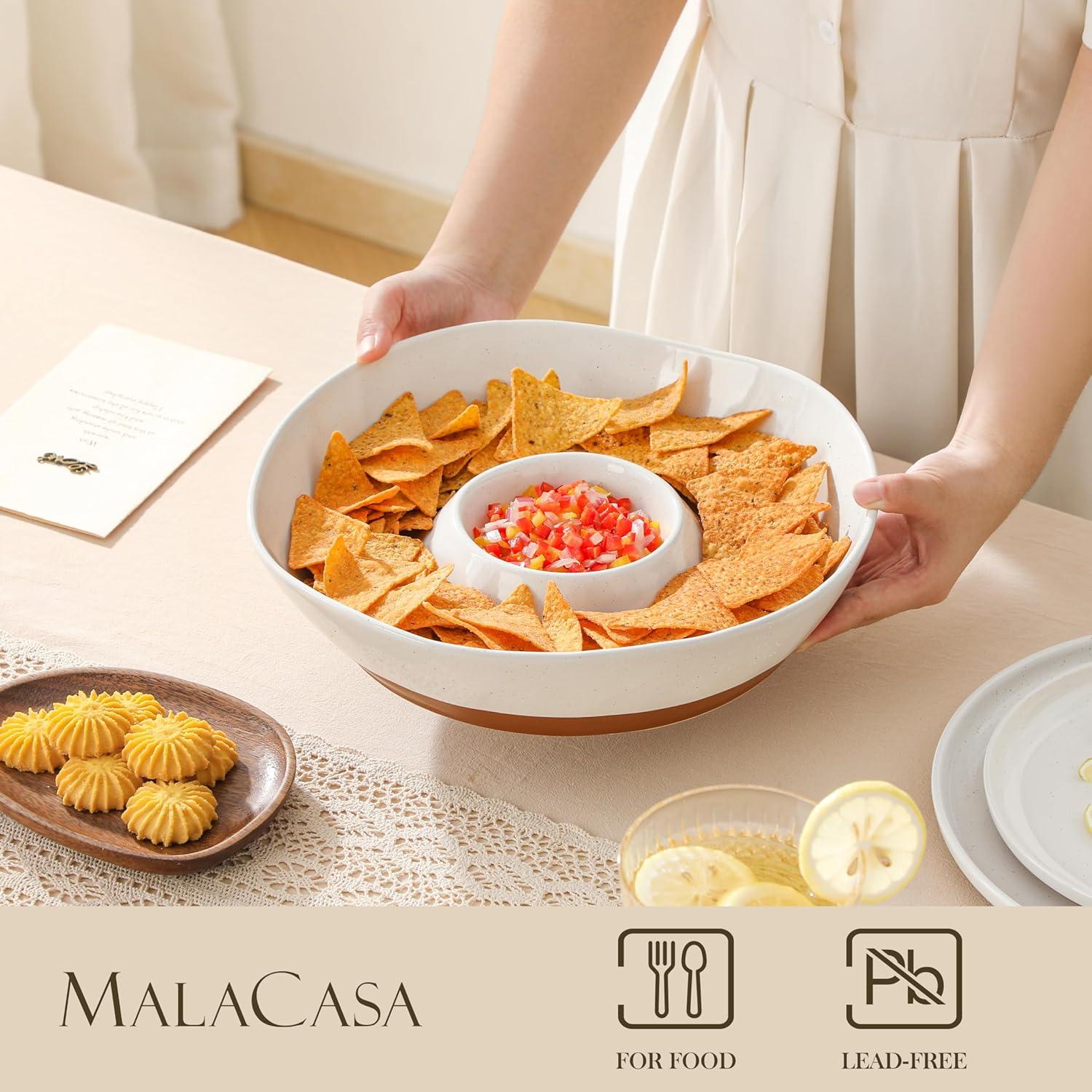【Efficient Divided Design】- The divided design keeps chips and dips perfectly separate. The built-in dipping bowls effectively prevent flavors from mixing, ensuring each food presents its best flavor.