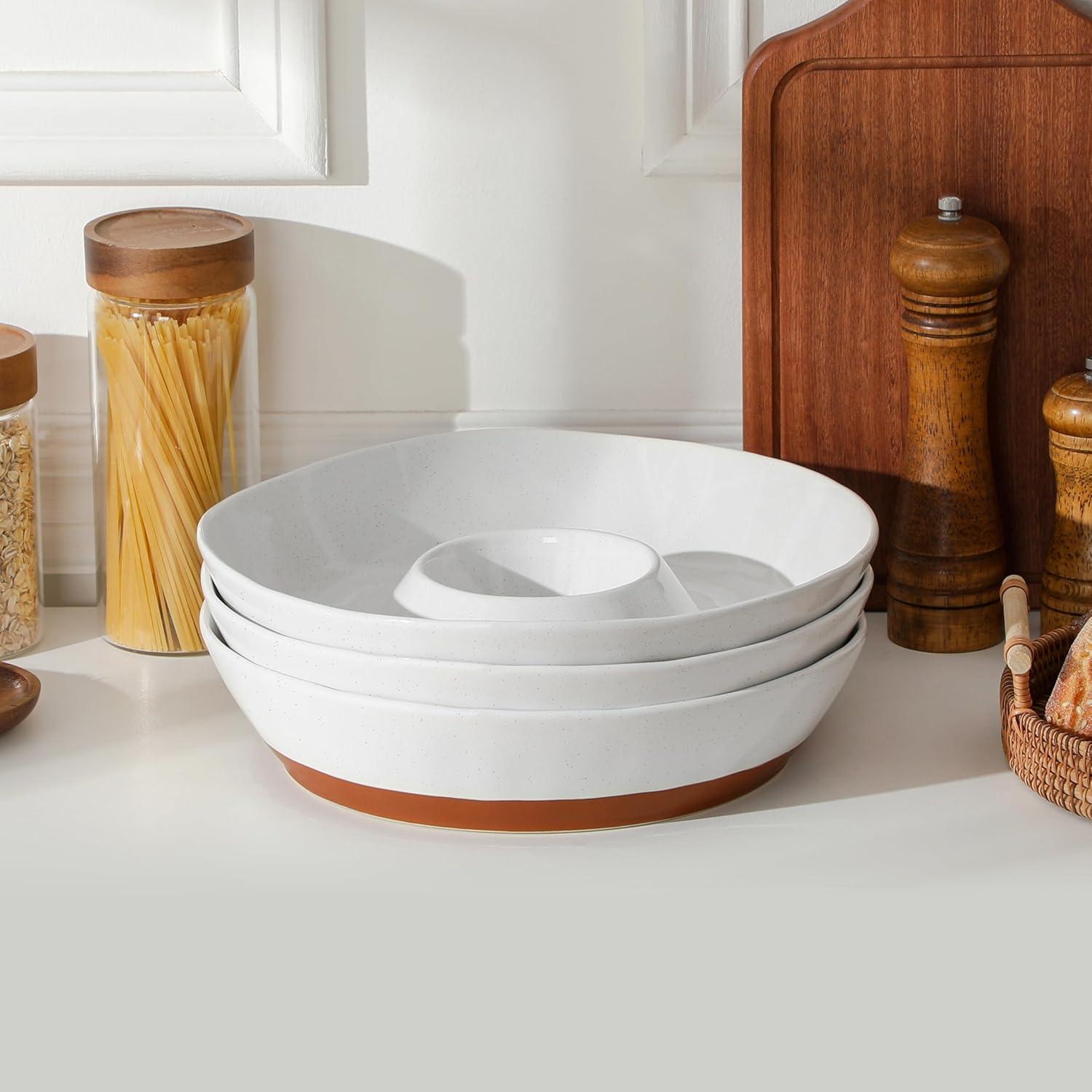 MALACASA Ceramic Chips and Dip Serving Tray, 12 Inch Large Divided Bowls Set for Salsa, Veggies & Dip, Appetizers, Snacks, Free-Form Serving Dish Platter for Parties Hosting & Entertaining, Gray(White)