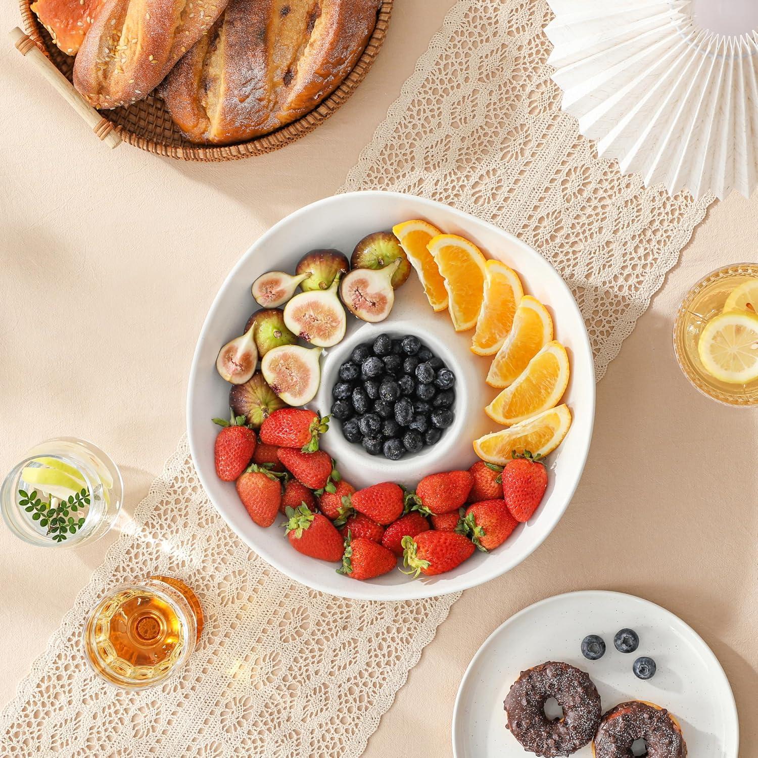 【Unlock Multiple Party Scenes】- It is the perfect party veggie platter, salad bowl, fruit platter, appetizer tray, and snack tray. This versatile piece meets all your entertaining needs, making it an all-rounder for parties, family gatherings, or daily hospitality.