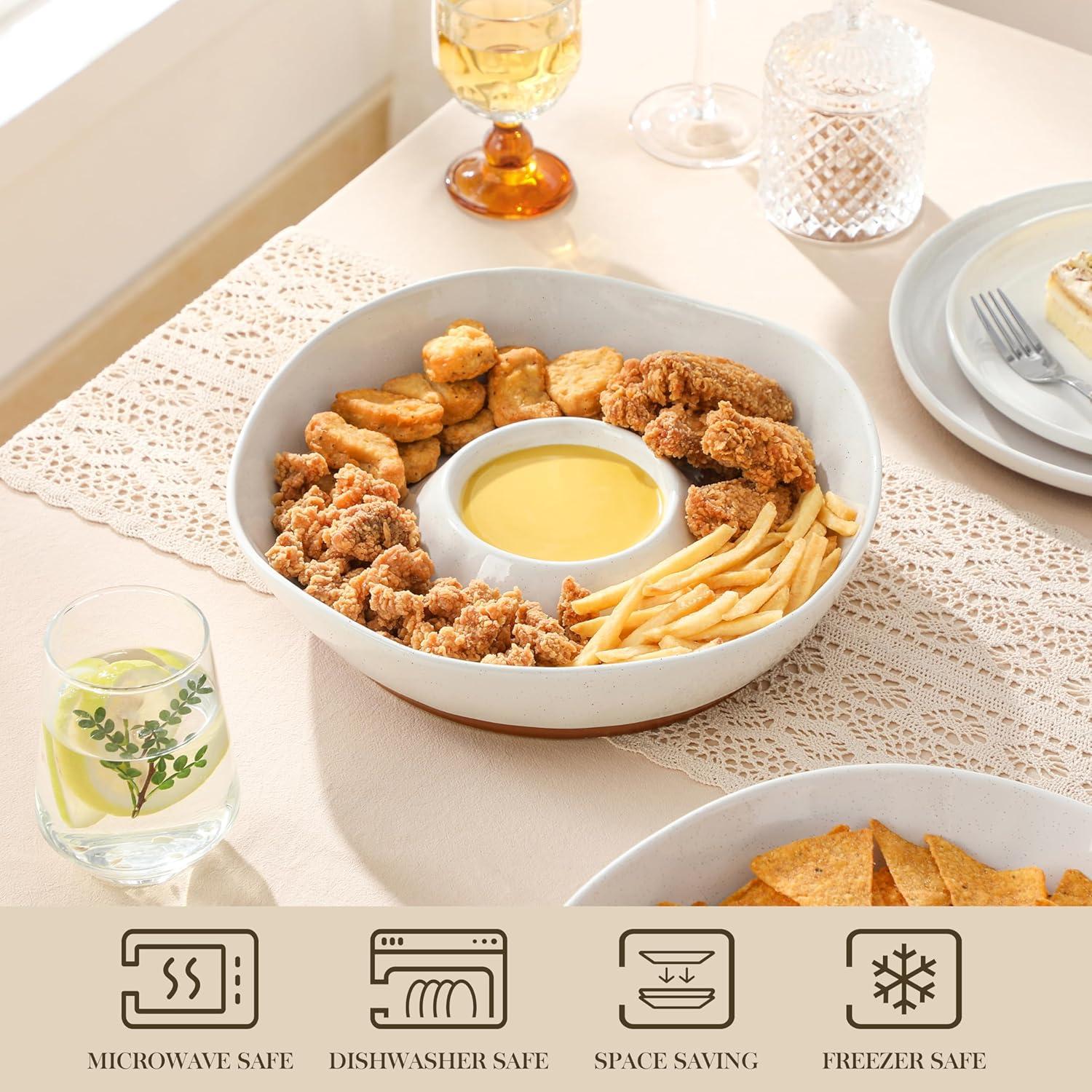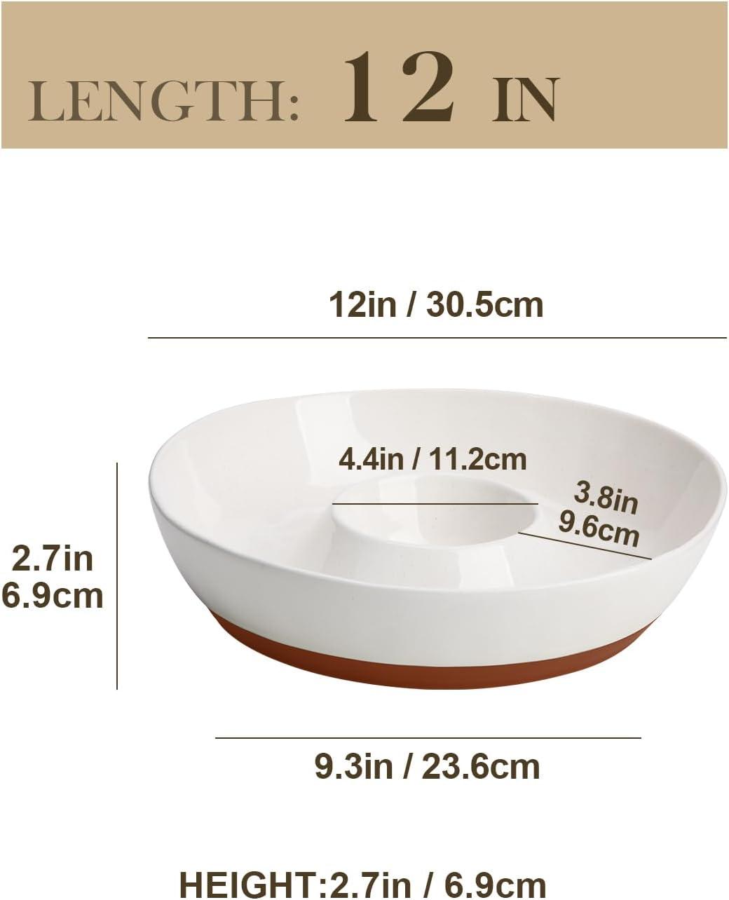 【Large Capacity & Practical Size】- Total diameter is 12 inches, with a height of 2.7 inches. The dipping bowl diameter is 4.4 inches with a 7oz capacity. The size is optimized to provide maximum serving space and dip capacity, easily catering all snacks and dips.