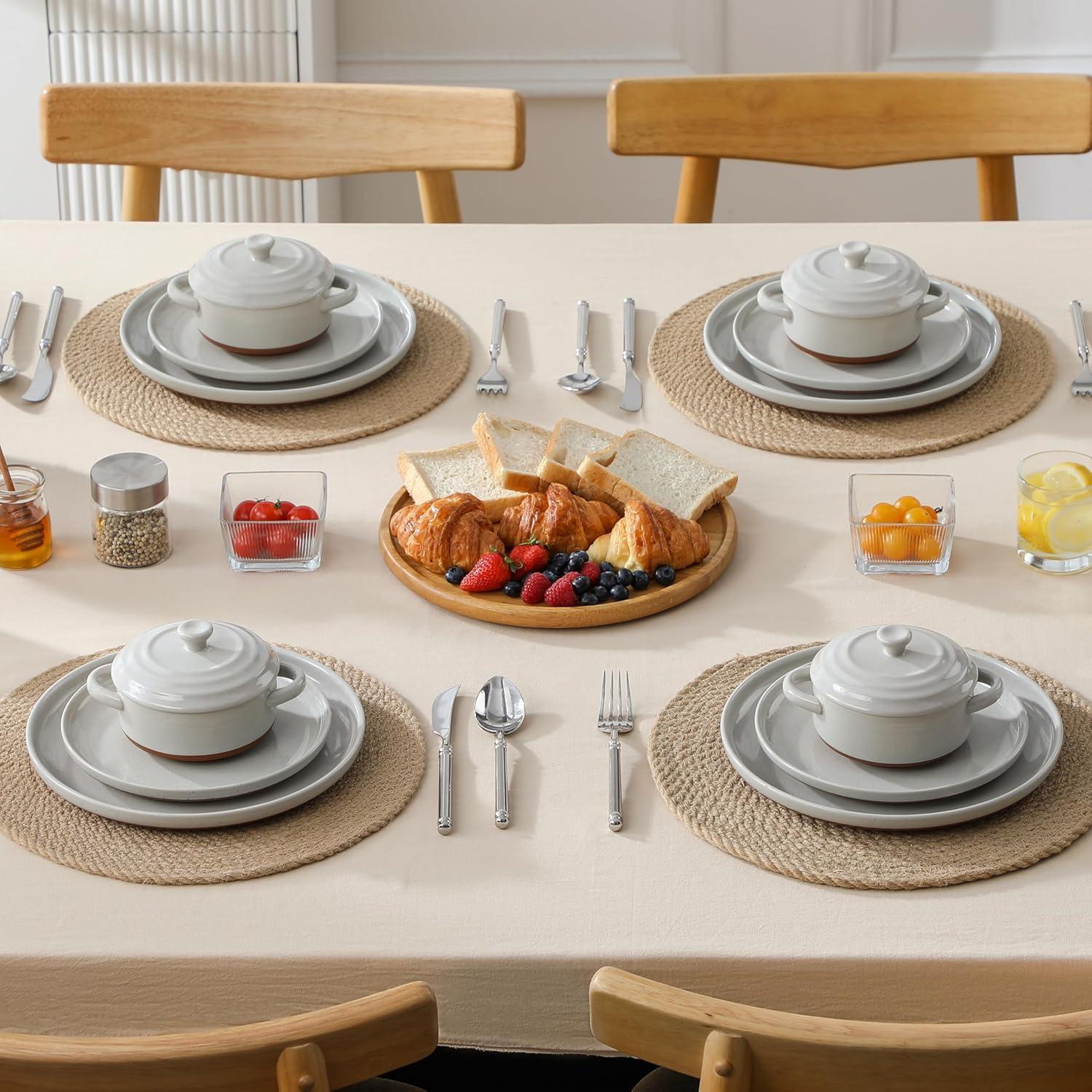 【Perfect Mini Cocotte Set】This MALACASA ceramic mini casserole set includes 4 individual-sized dishes, each with a 12 oz capacity, ideal for serving lasagna, pudding, soup, or baked desserts
