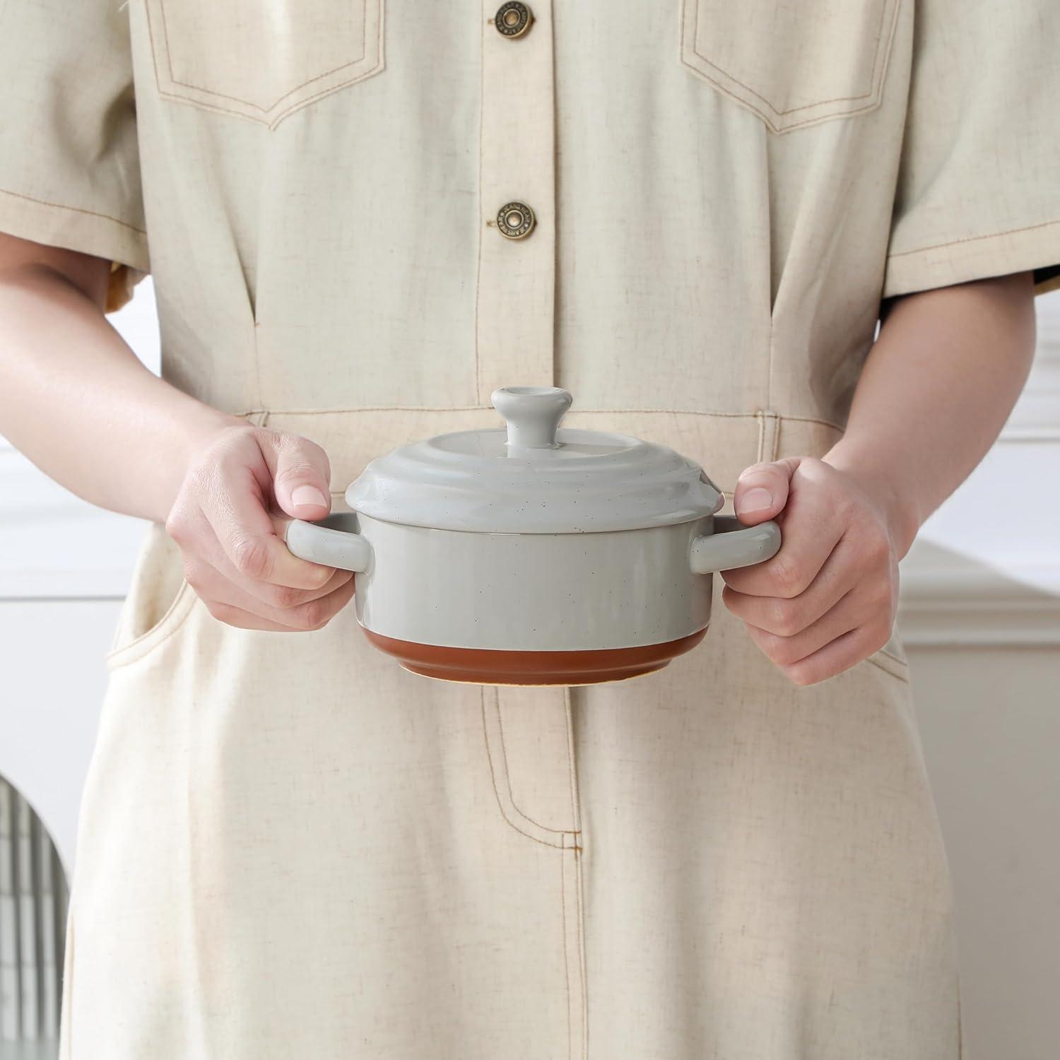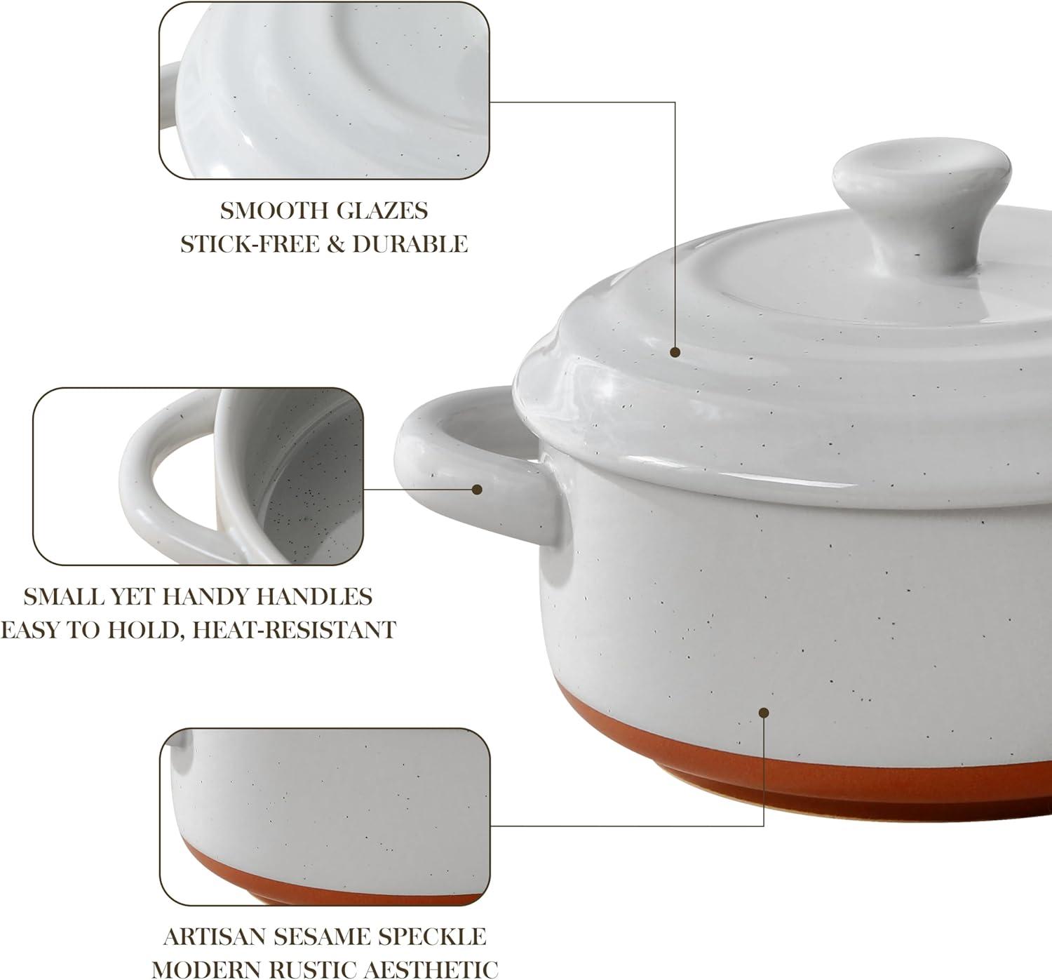 【Elegant and Functional Design】Featuring a stylish white ceramic finish with subtle sesame-speckle texture and khaki base trim, these mini Dutch ovens add a touch of sophistication to your kitchen and dining table