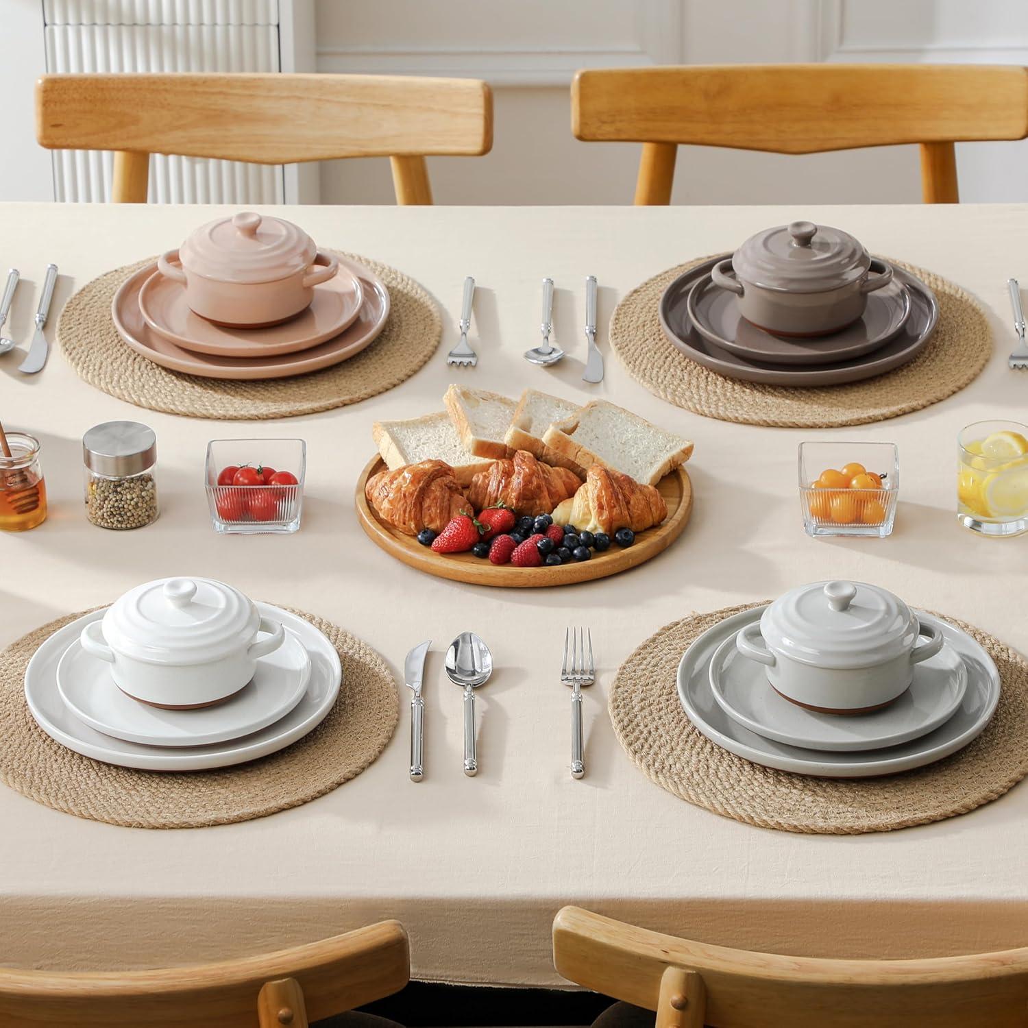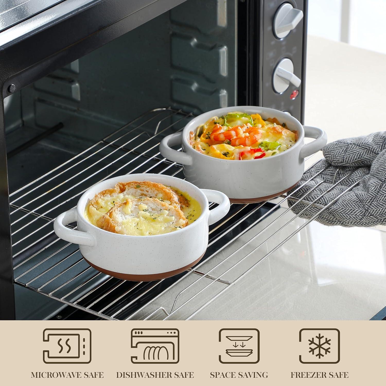 【Perfect Mini Cocotte Set】This MALACASA ceramic mini casserole set includes 4 individual-sized dishes, each with a 12 oz capacity, ideal for serving lasagna, pudding, soup, or baked desserts