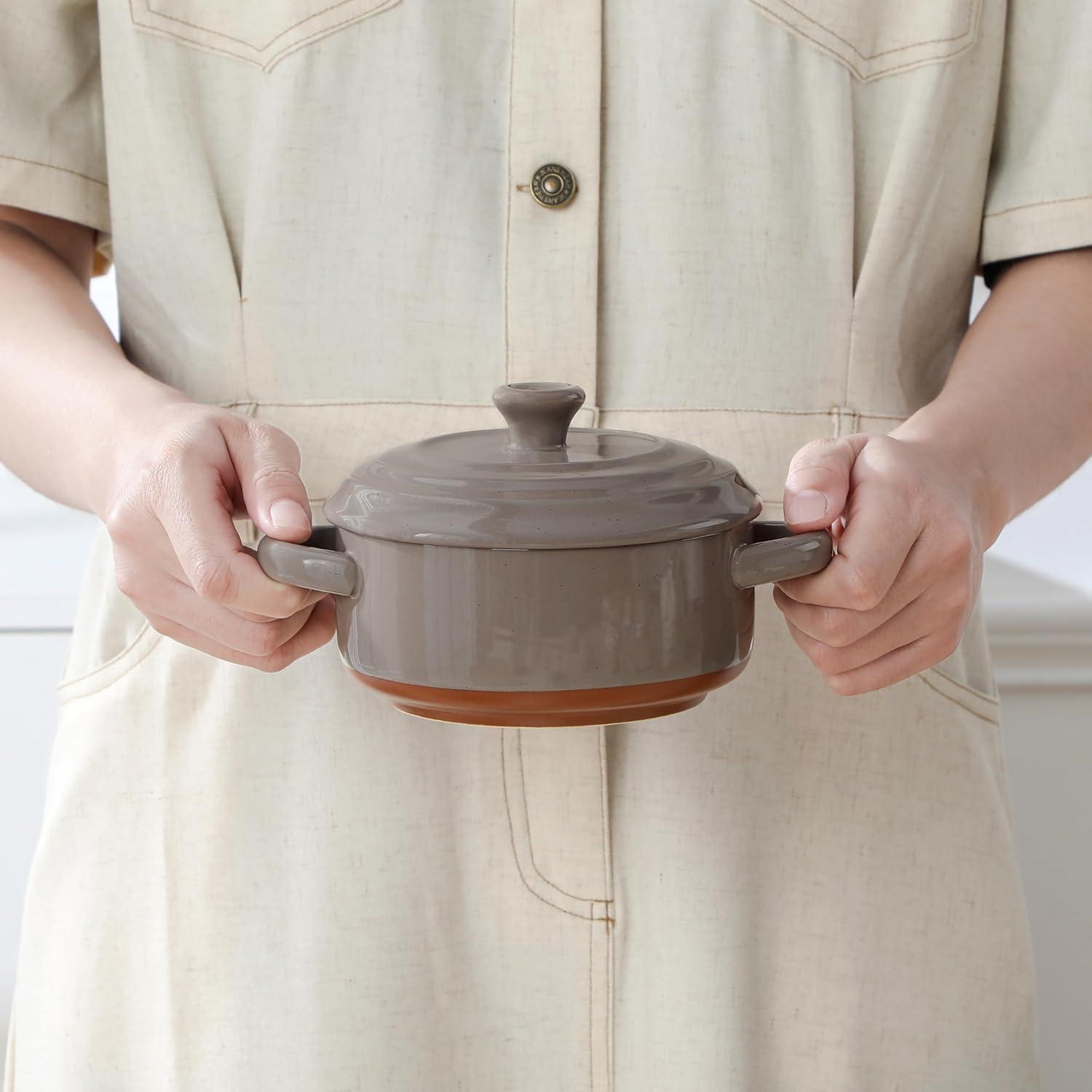MALACASA Mini Cocotte Set - 12 OZ Small Casserole Dishes for Oven, Ramekins with Lids and Handles, Ceramic Mini Dutch Oven Set of 4, Microwave & Dishwasher Safe, Khaki White, Series TARA(Multicolor)