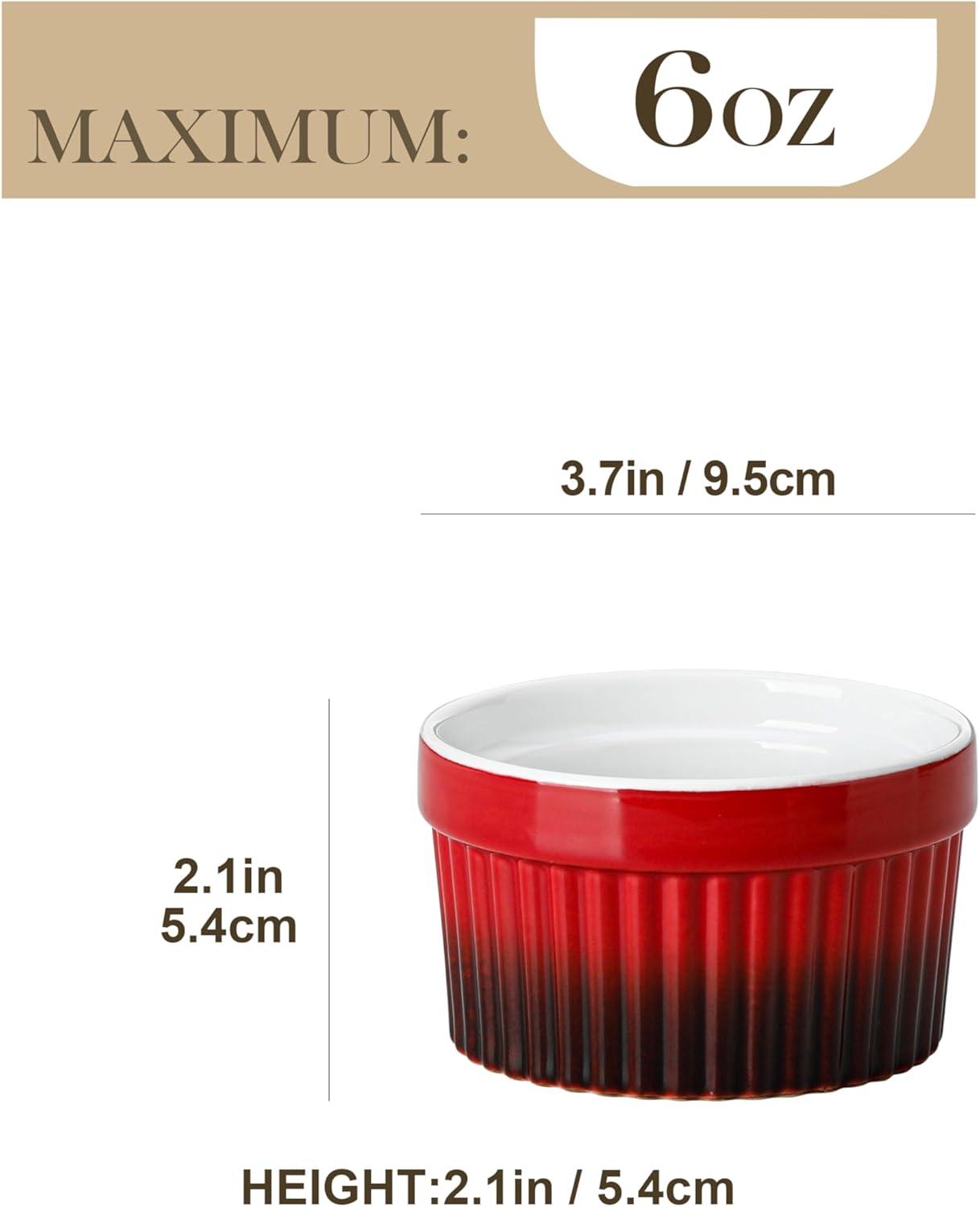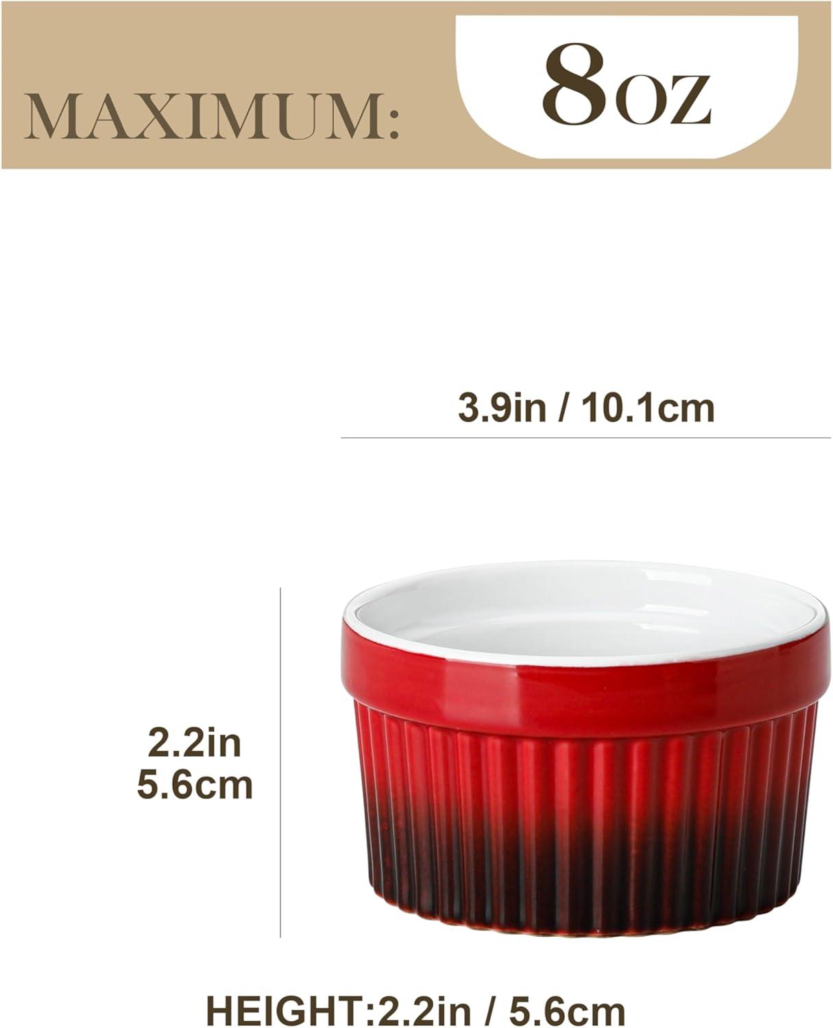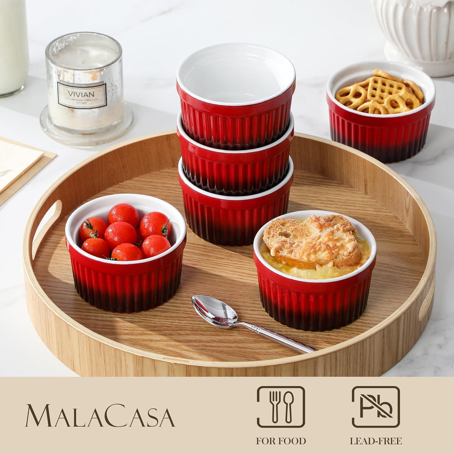 MALACASA Ramekins 8 oz Oven Safe, Large Ceramic Souffle Dishes for Baking & Serving, Stoneware Custard Cups Ramekin for Creme Brulee, Baking Bowls Set of 6, Grey, Series RAMEKIN-DISH(Red)
