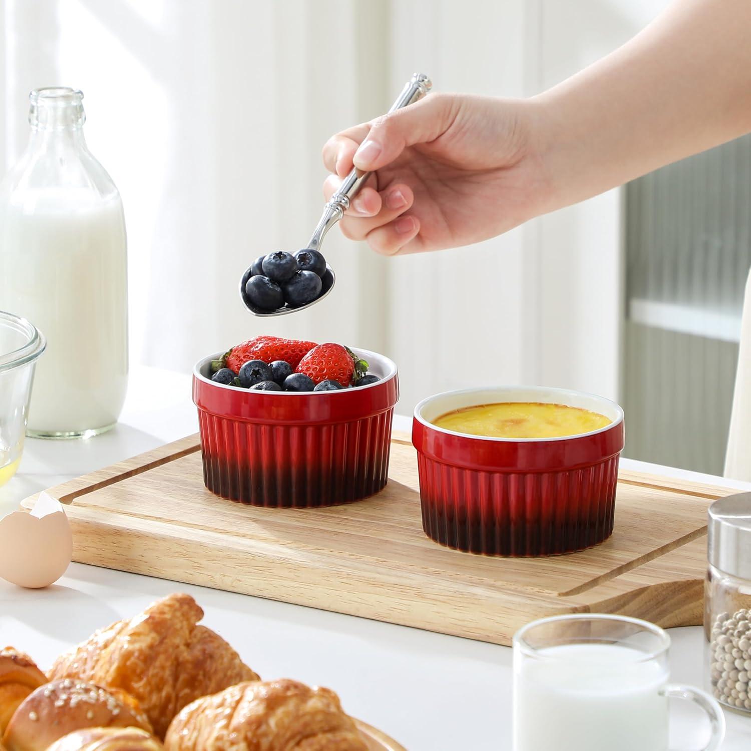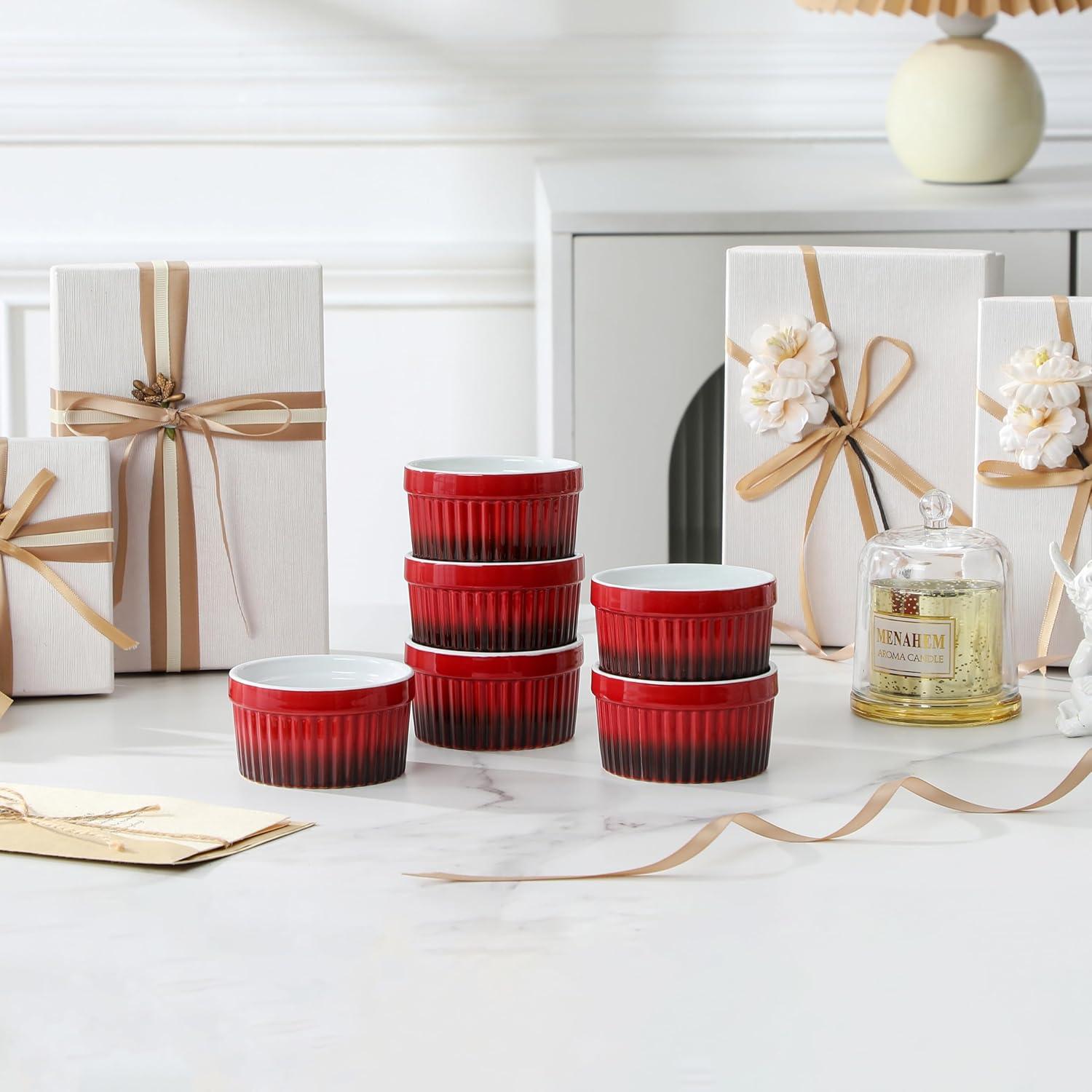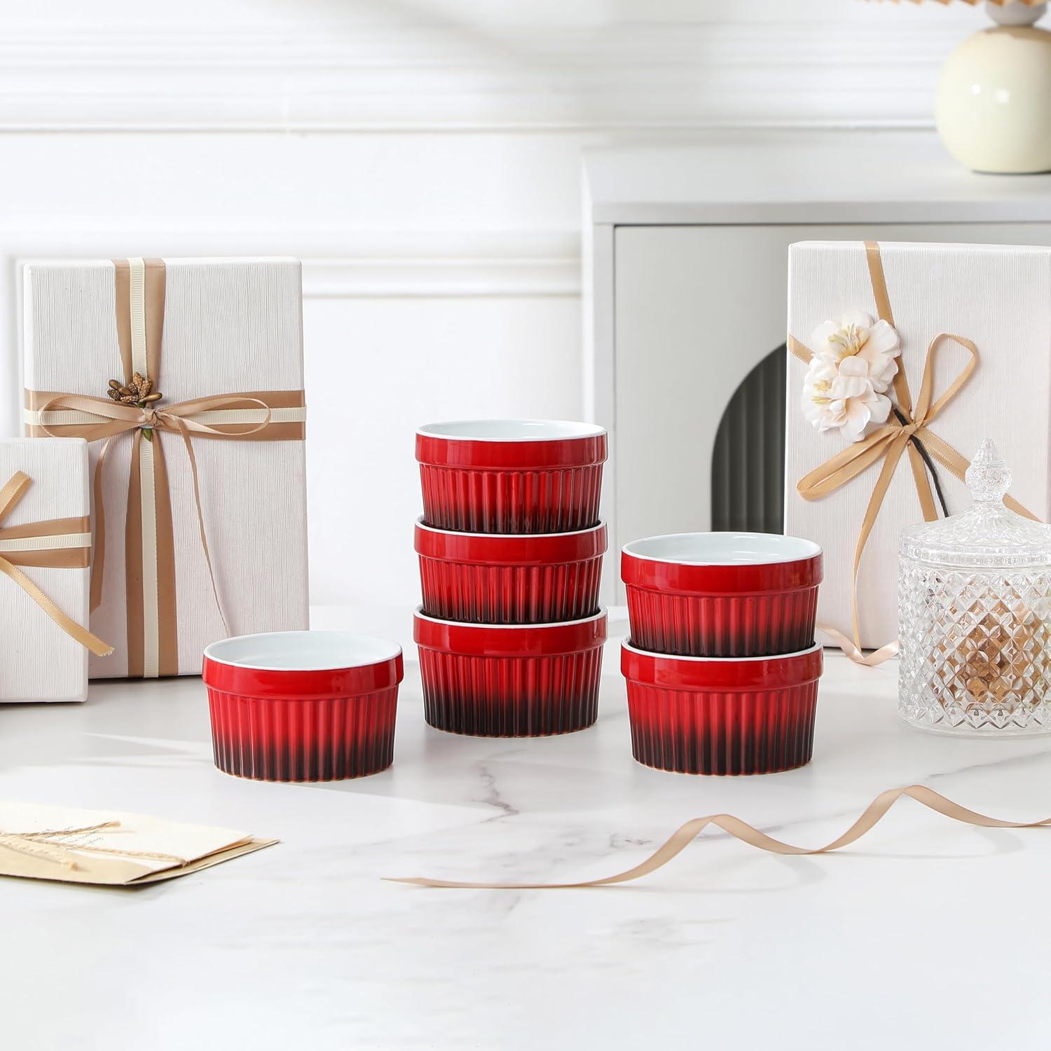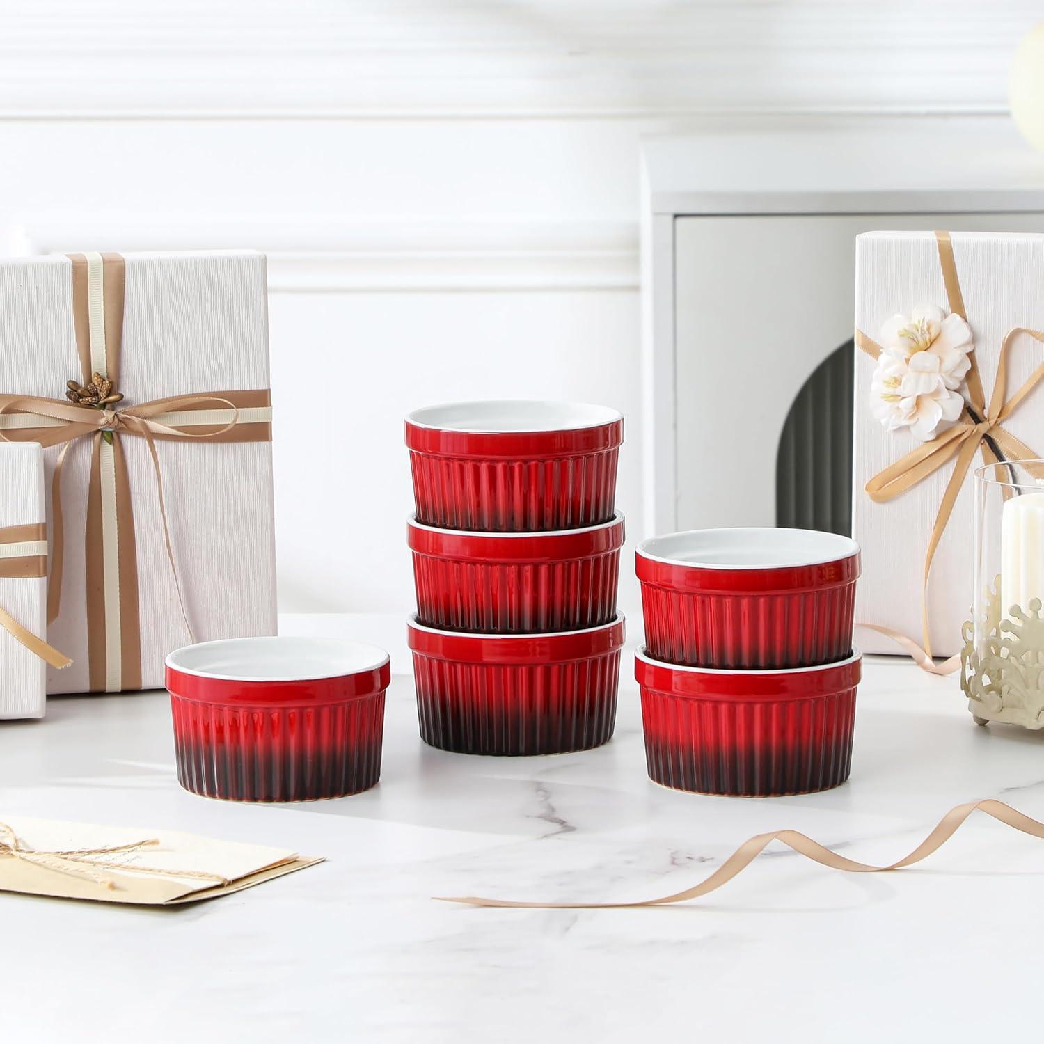 MALACASA Ramekins 8 oz Oven Safe, Large Ceramic Souffle Dishes for Baking & Serving, Stoneware Custard Cups Ramekin for Creme Brulee, Baking Bowls Set of 6, Grey, Series RAMEKIN-DISH(Red)