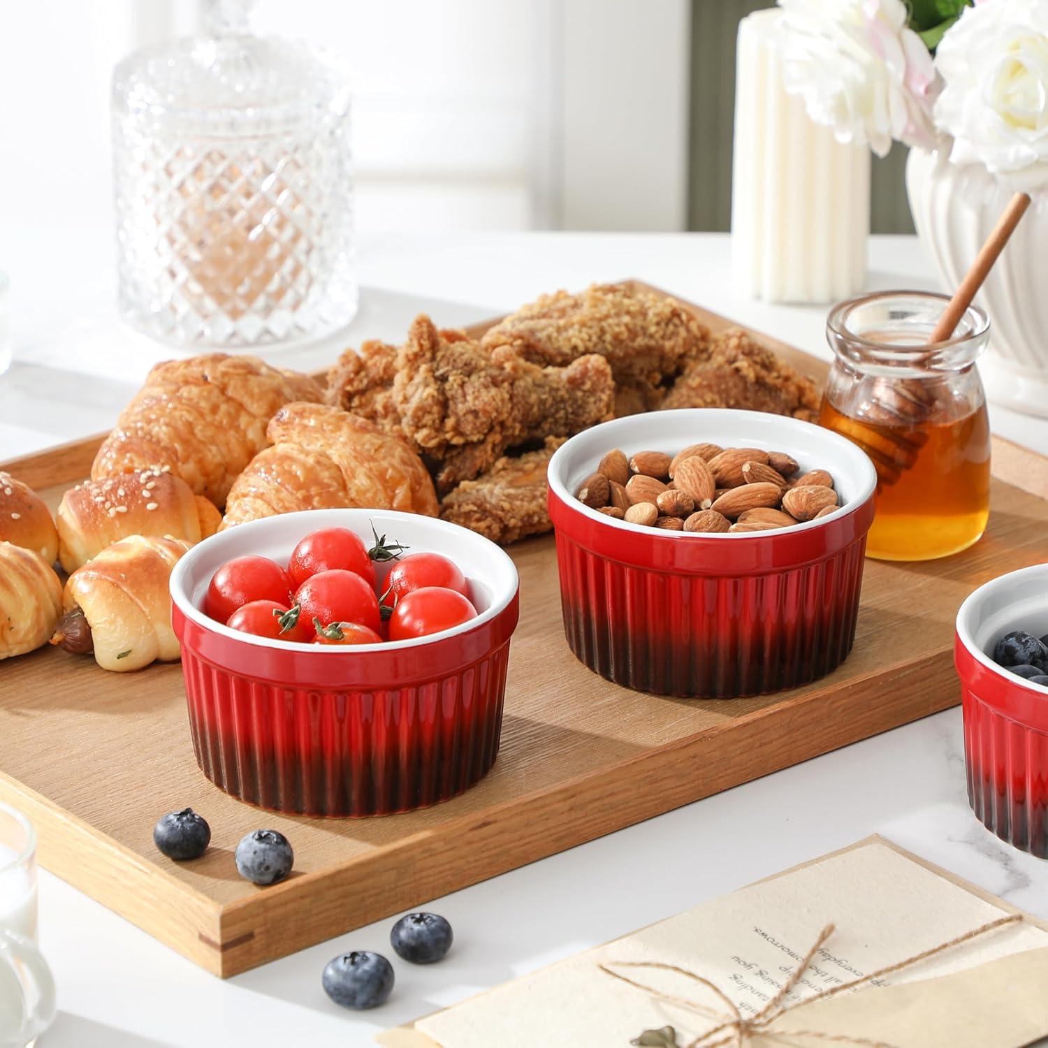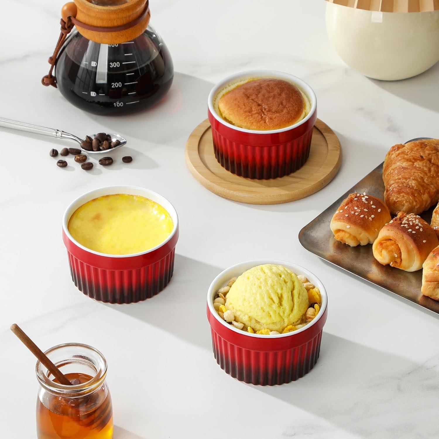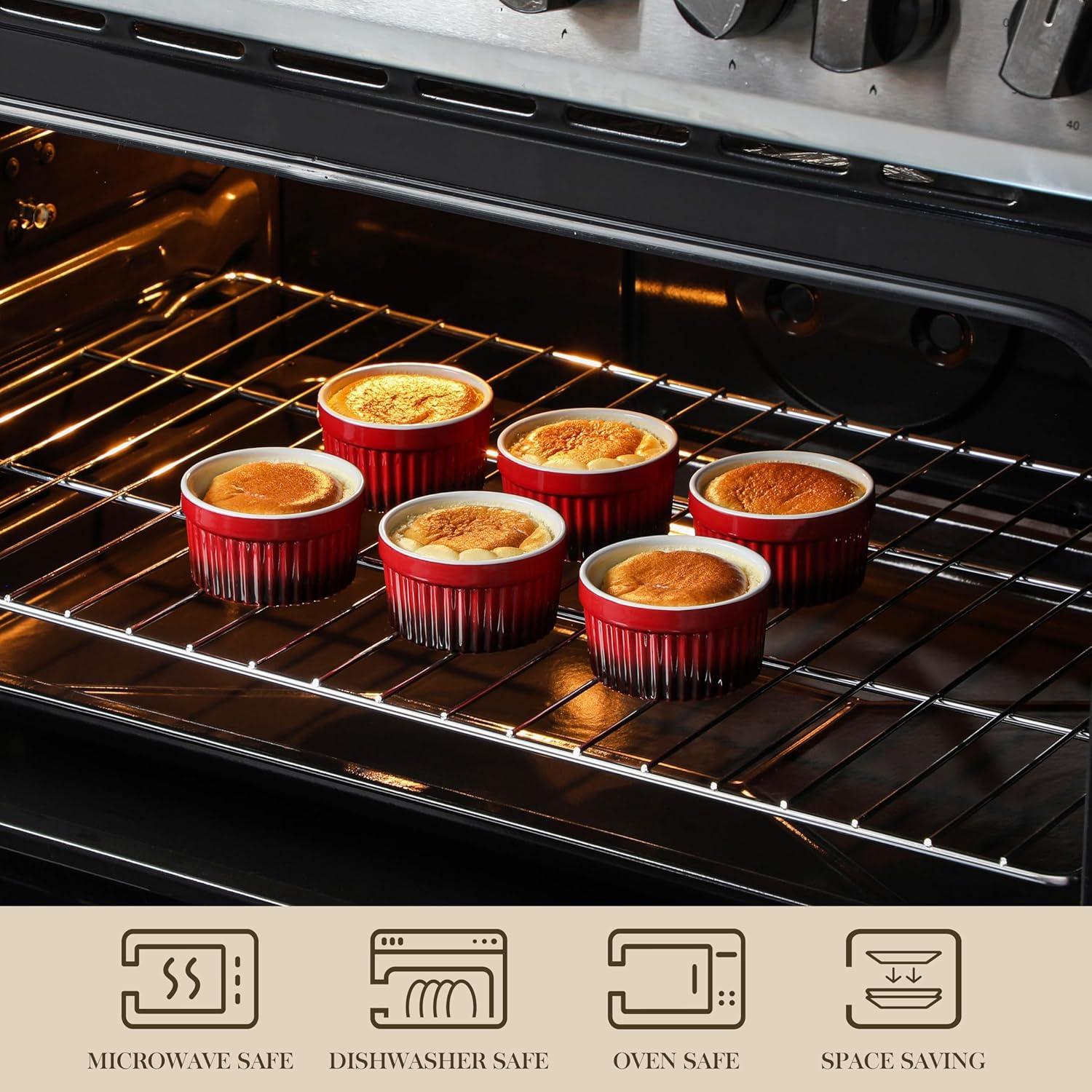 imageMALACASA Ramekins 8 oz Oven Safe Large Ceramic Souffle Dishes for Baking ampamp Serving Stoneware Custard Cups Ramekin for Creme Brulee Baking Bowls Set of 6 Grey Series RAMEKINDISHRed
